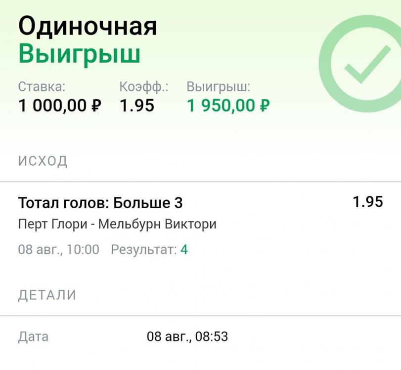 Легенда Larry H. Опубликовано 20 февраля, 2015 Легенда Опубликовано 20 февраля, 2015 (изменено) я пока отошёл от ставок, потренюсь тут юта доп фора +9,5 за 1.35 + победа НОП за 1.42 + победа майами за 1.33 (итого 2.55) ну и второй. хьюстон за 1.5 + Энтони Дэвис 25,5 ТБ за 1,85 (2,78 итого) ещё можно одинар против тэда янга. 13,5 тб бузера поставил бы ещё за 1.85 мб понравится что кому Изменено 20 февраля, 2015 пользователем Larry H. 0 Цитата
