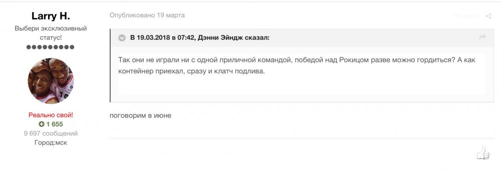 holy shit Опубликовано 8 мая, 2018 Опубликовано 8 мая, 2018 Чет лариха почти нет наверно думает на кого переобуться Терри розир идеальный вариант 0 Цитата