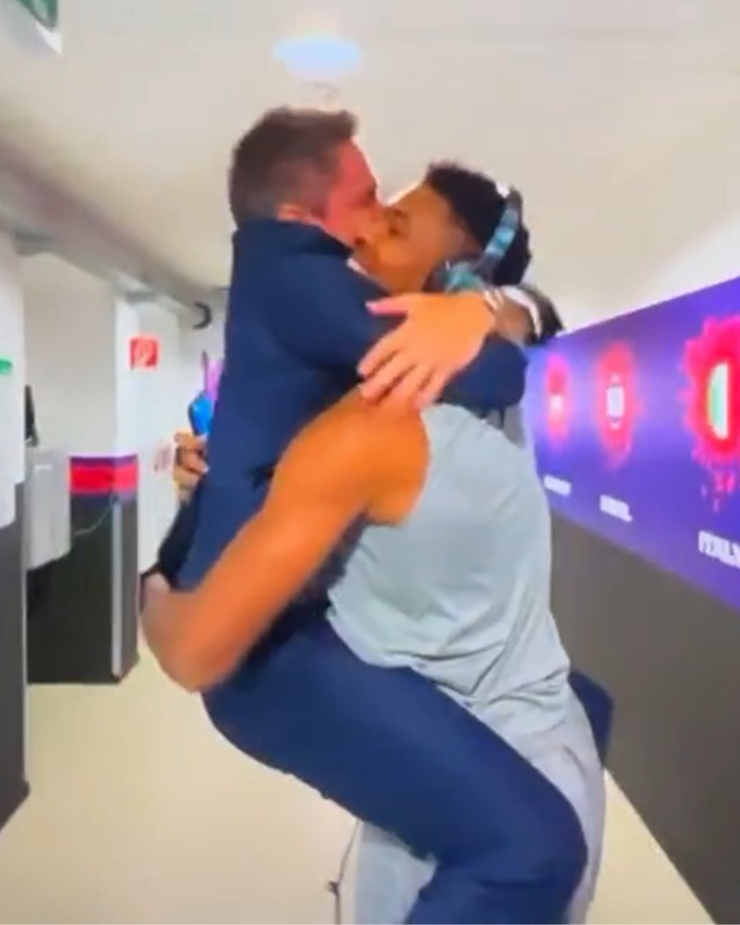 Поццекко встретил лидера сборной Греции Янниса Адетокумбо в подтрибунном помещении. Специалист запрыгнул на форварда «Милуоки», радуясь успеху своей команды.