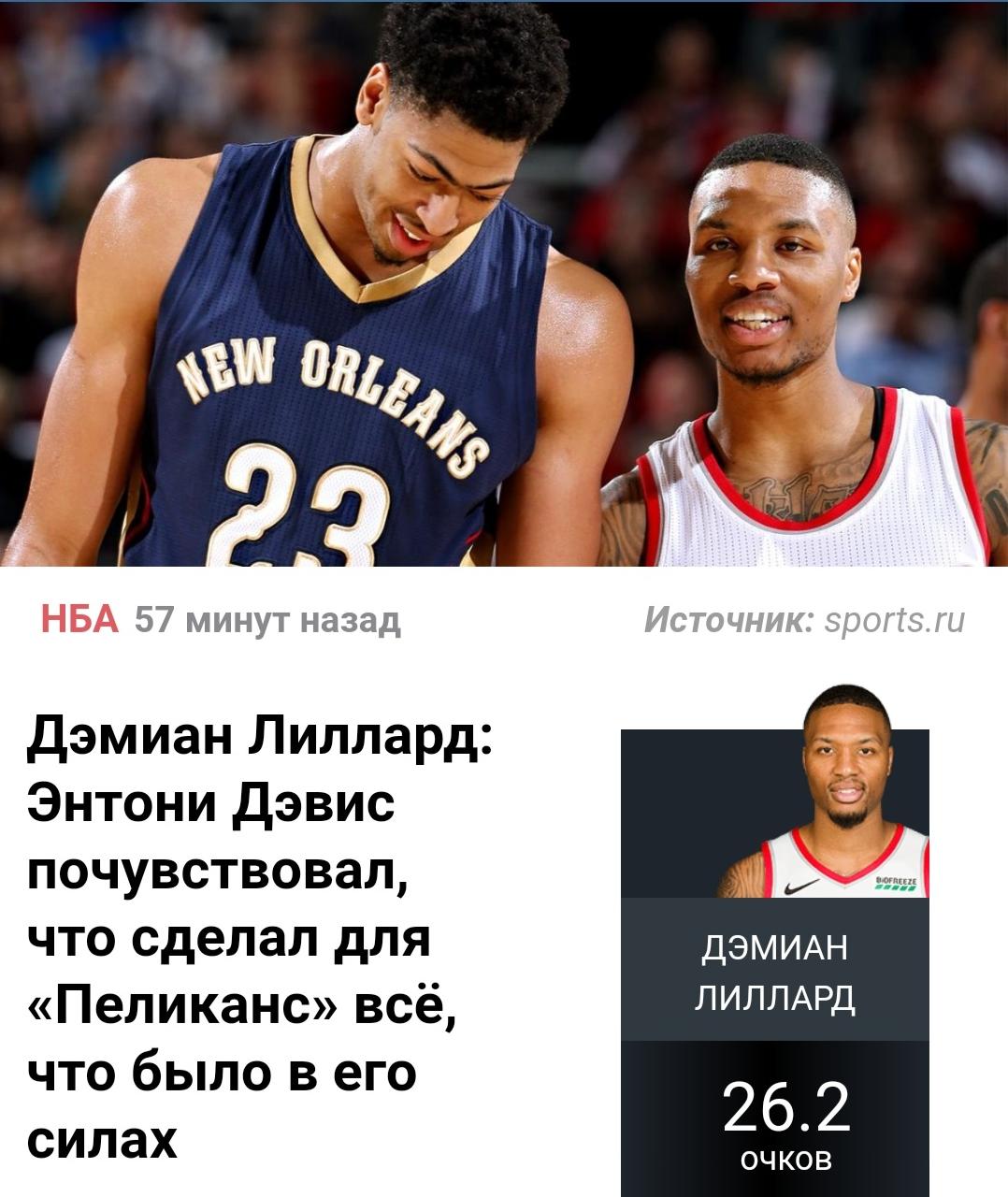 Разыгрывающий «Портленда» Дэмиан Лиллард поделился мнением о решении форварда «Нового Орлеана» Энтони Дэвиса сменить команду.