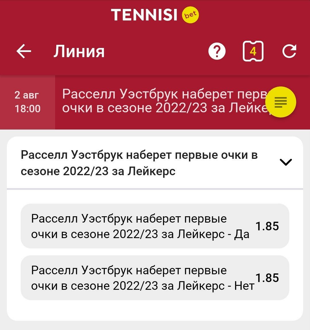 У наших друзей из TENNISI.bet есть эксклюзивная линия на то, что Расселл наберет свои первый матч в следующем сезоне за «Лейкерс».