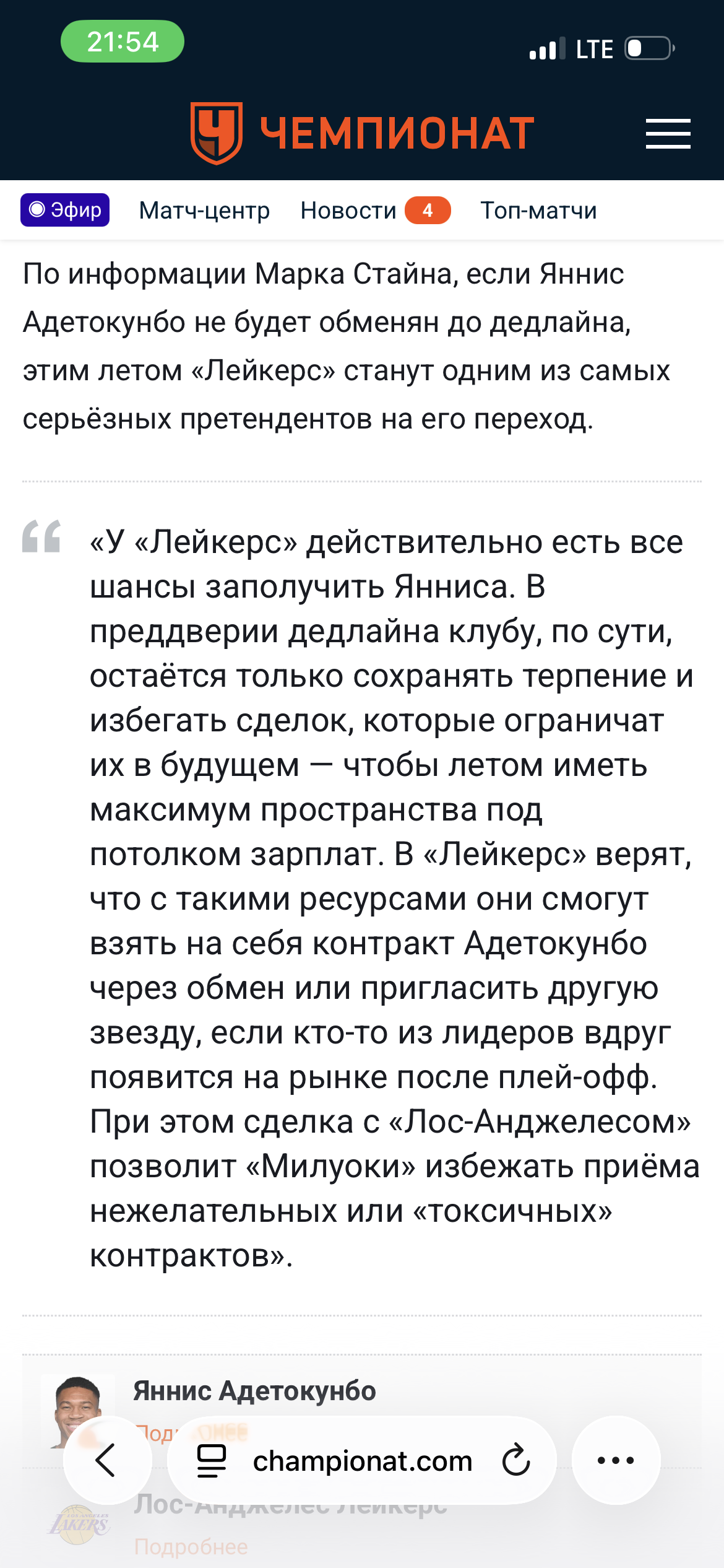 Брайан Уиндхорст сообщил в эфире ESPN, что Дрэймонд Грин и «Лейкерс» заинтересованы в совместном будущем, но это возможно лишь в рамках сложной сделки по переходу Янниса Адетокумбо в «Голден Стэйт».