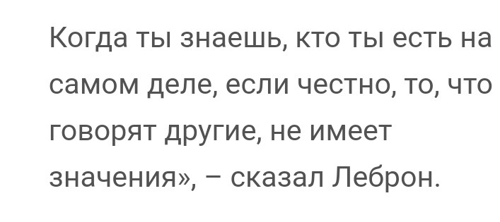 Когда ты знаешь, кто ты есть на самом деле, если честно, то, что говорят другие, не имеет значения», – сказал Леброн.