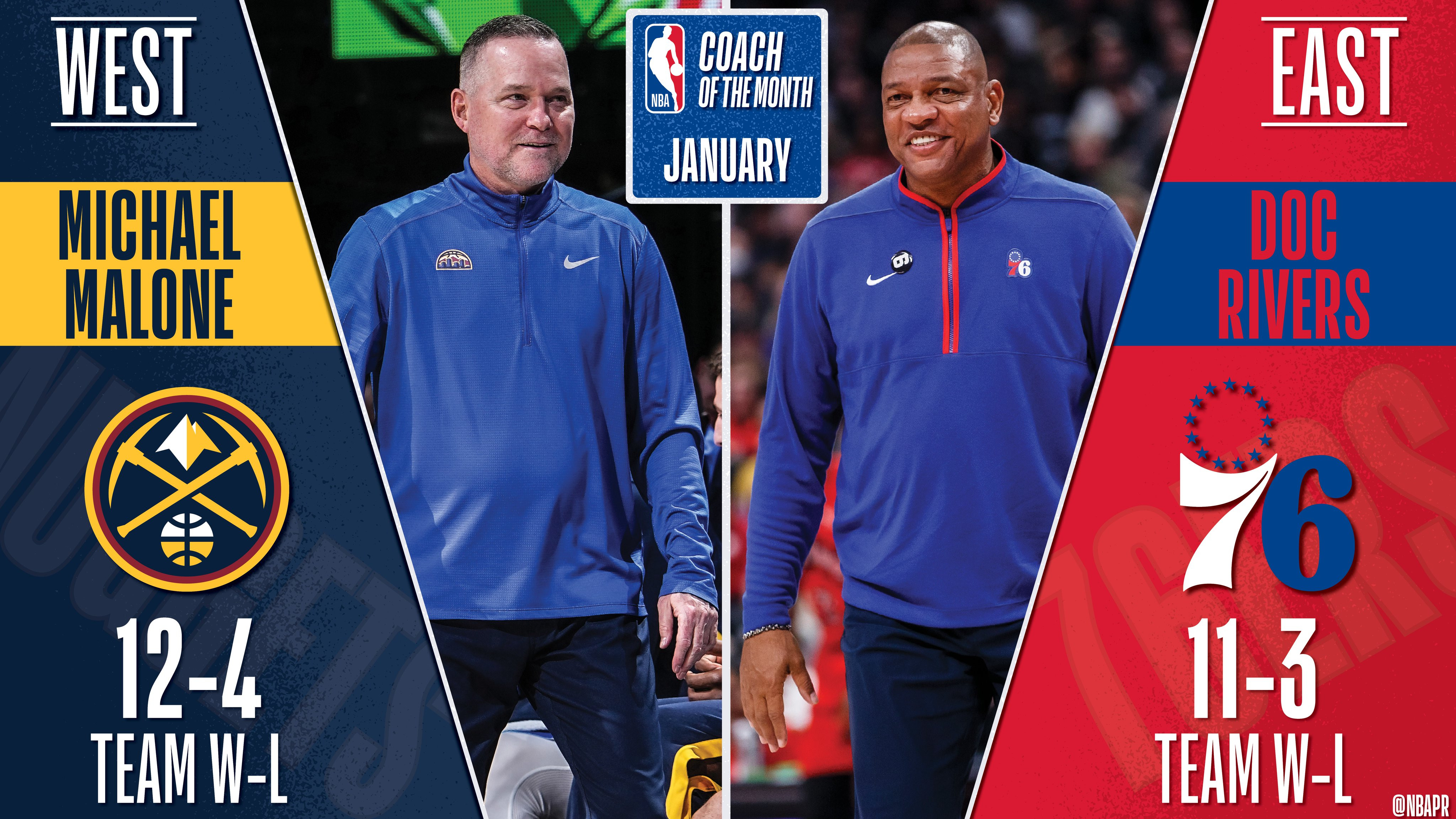 Док Риверс («Филадельфия») и Майкл Мэлоун («Денвер») признаны лучшими тренерами Восточной и Западной конференции соответственно по итогам января.