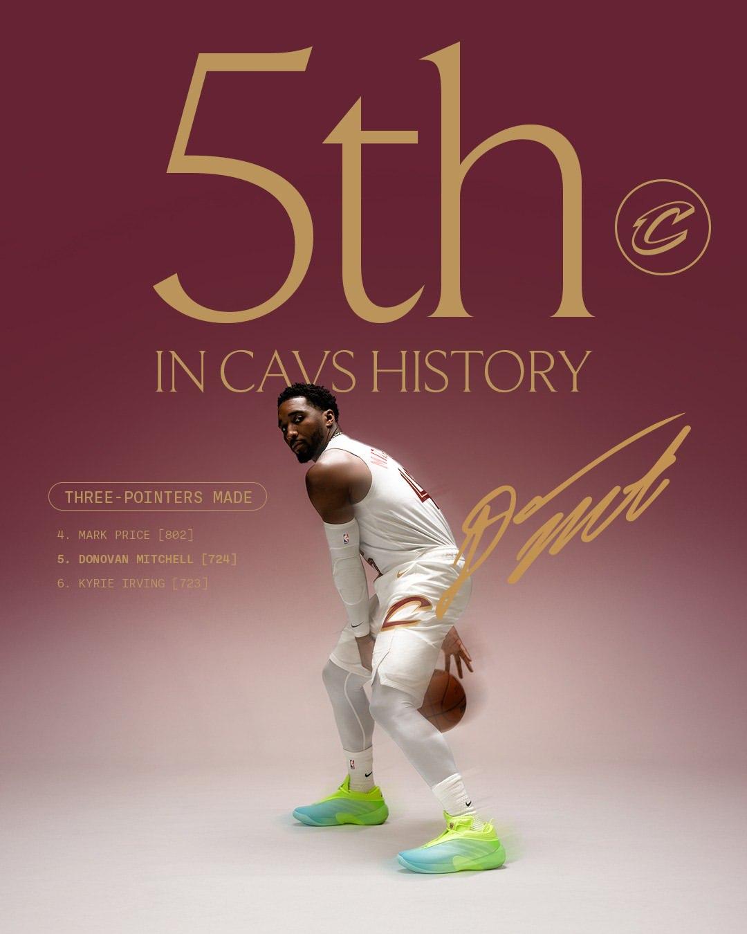 Защитник «Кэвс» Донован Митчелл преодолел отметку в 724 трехочковых, тем самым, он обошёл звездного разыгрывающего Кайри Ирвинга (723) по реализованным трехочковым в истории «Кливленда».