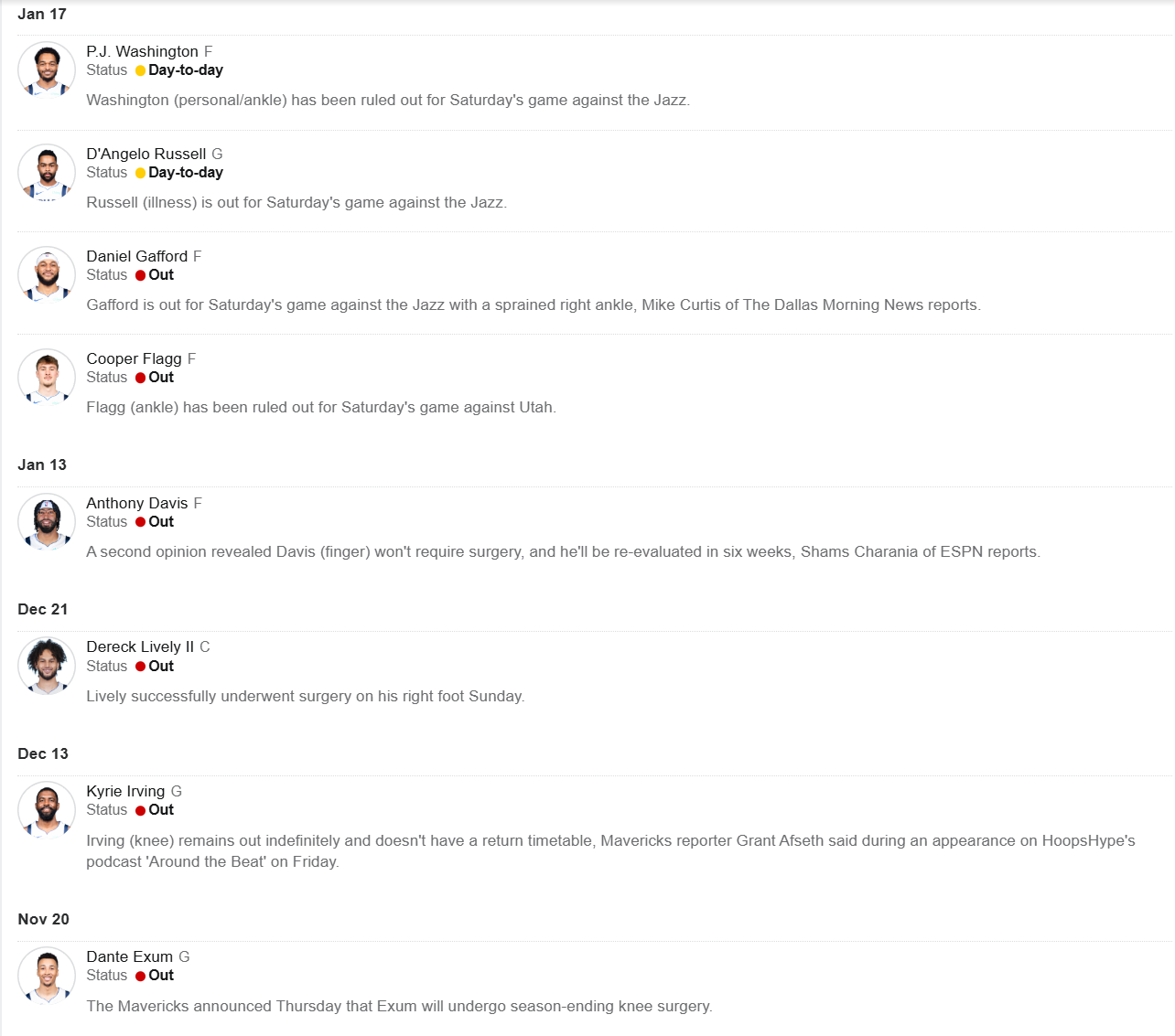 Сегодня «Лейкерс» остались без Луки Дончича (боль в паховой области), Остина Ривза (растяжение икроножной мышцы), Деандре Эйтона (боль в колене), Джексона Хейса (тендинопатия задней поверхности бедра) и Аду Тьеро (растяжение медиальной коллатеральной связки). О недоступности Дончича, Ривза и Тьеро было известно заранее, а Эйтон и Хейс присоединились к ним в день игры.