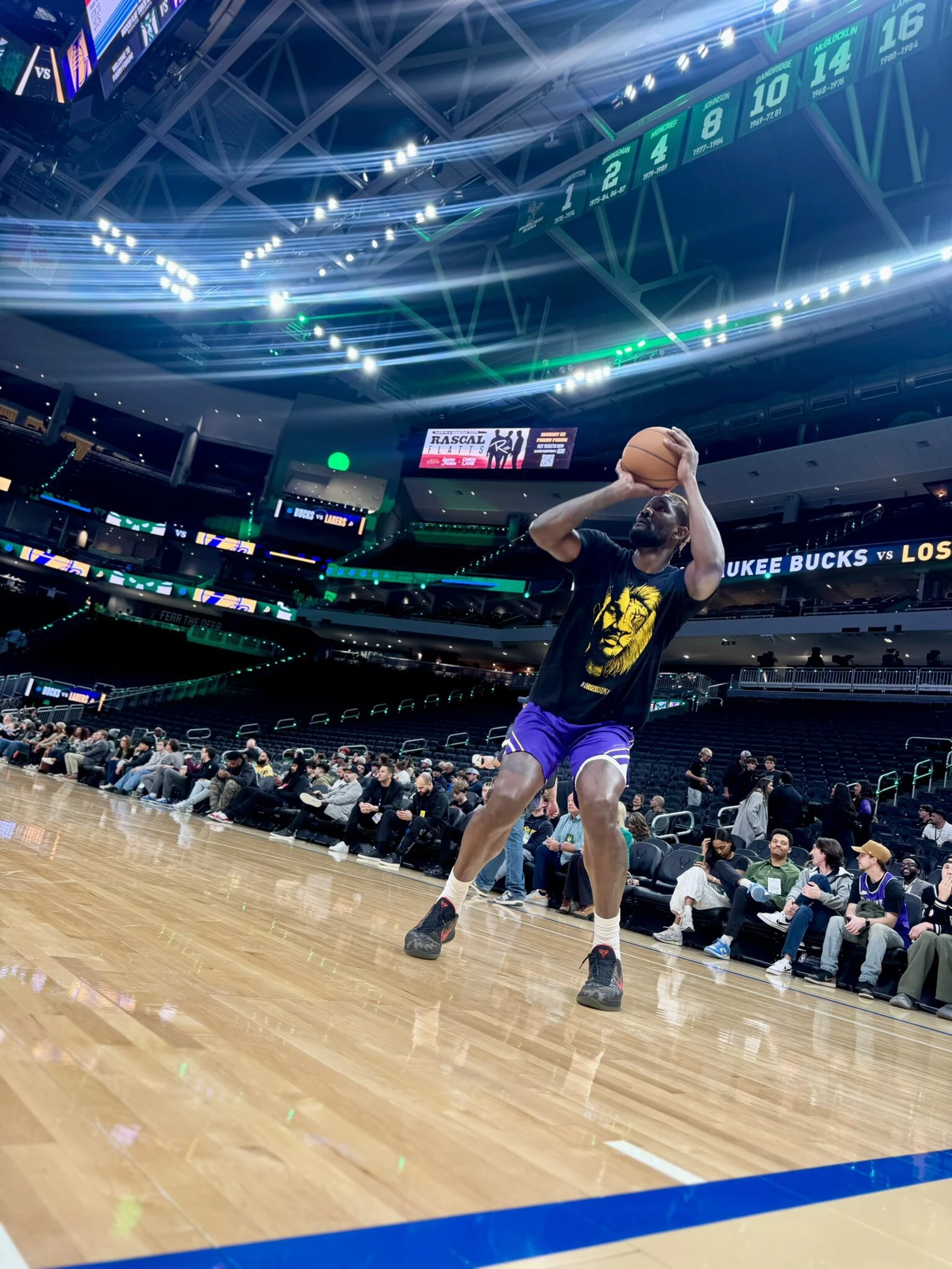 Специалист перед матчем с «Бакс» предстал в кастомной футболке с изображением льва и «большого» калифорнийцев. Эйтон вышел в такой же на разминку.