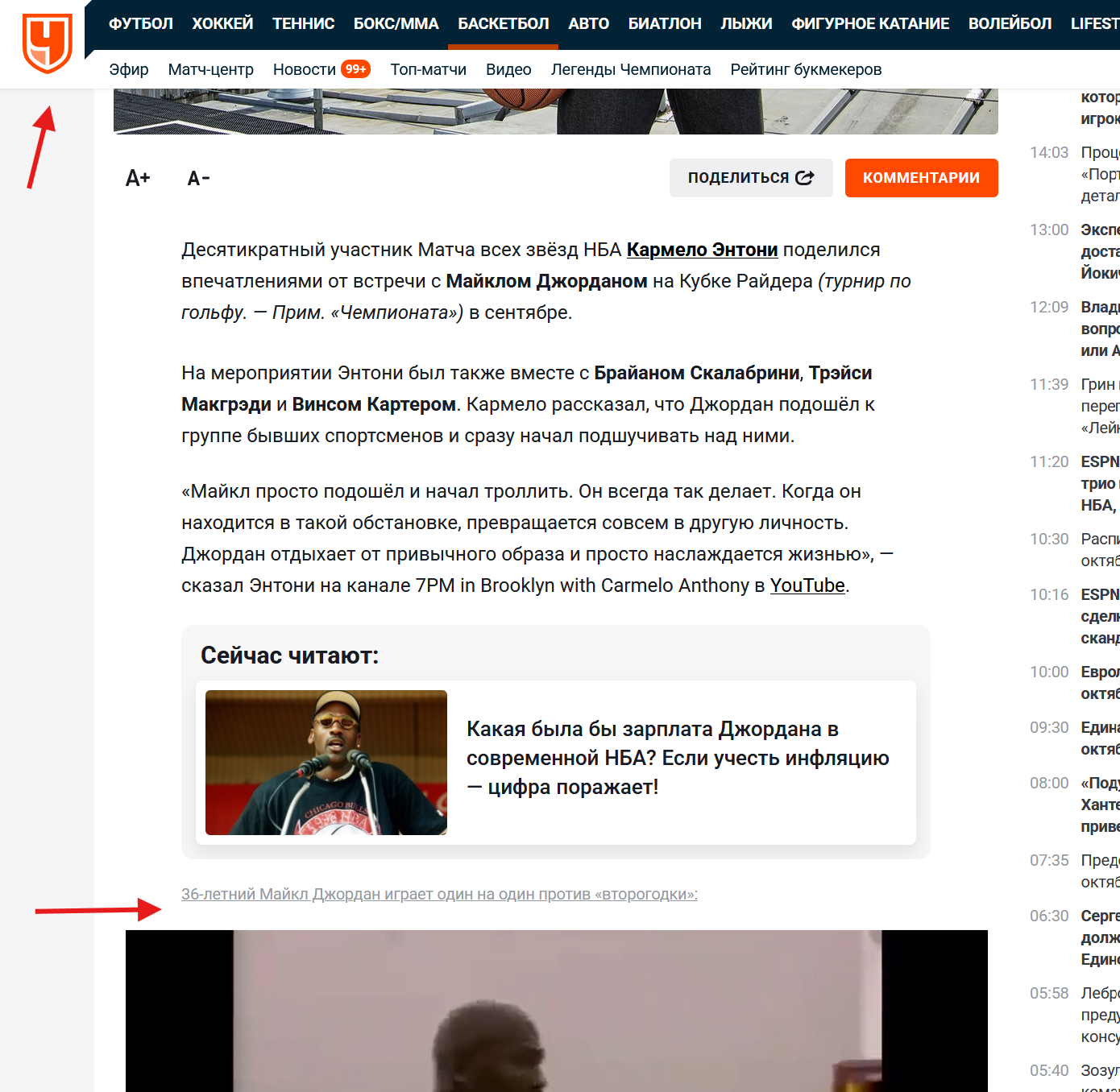 Десятикратный участник Матча всех звёзд НБА Кармело Энтони рассказал о встрече с Майклом Джорданом на Кубке Райдера по гольфу в сентябре. Энтони был в компании Брайана Скалабрини, Трэйси Макгрэди и Винсом Картером.