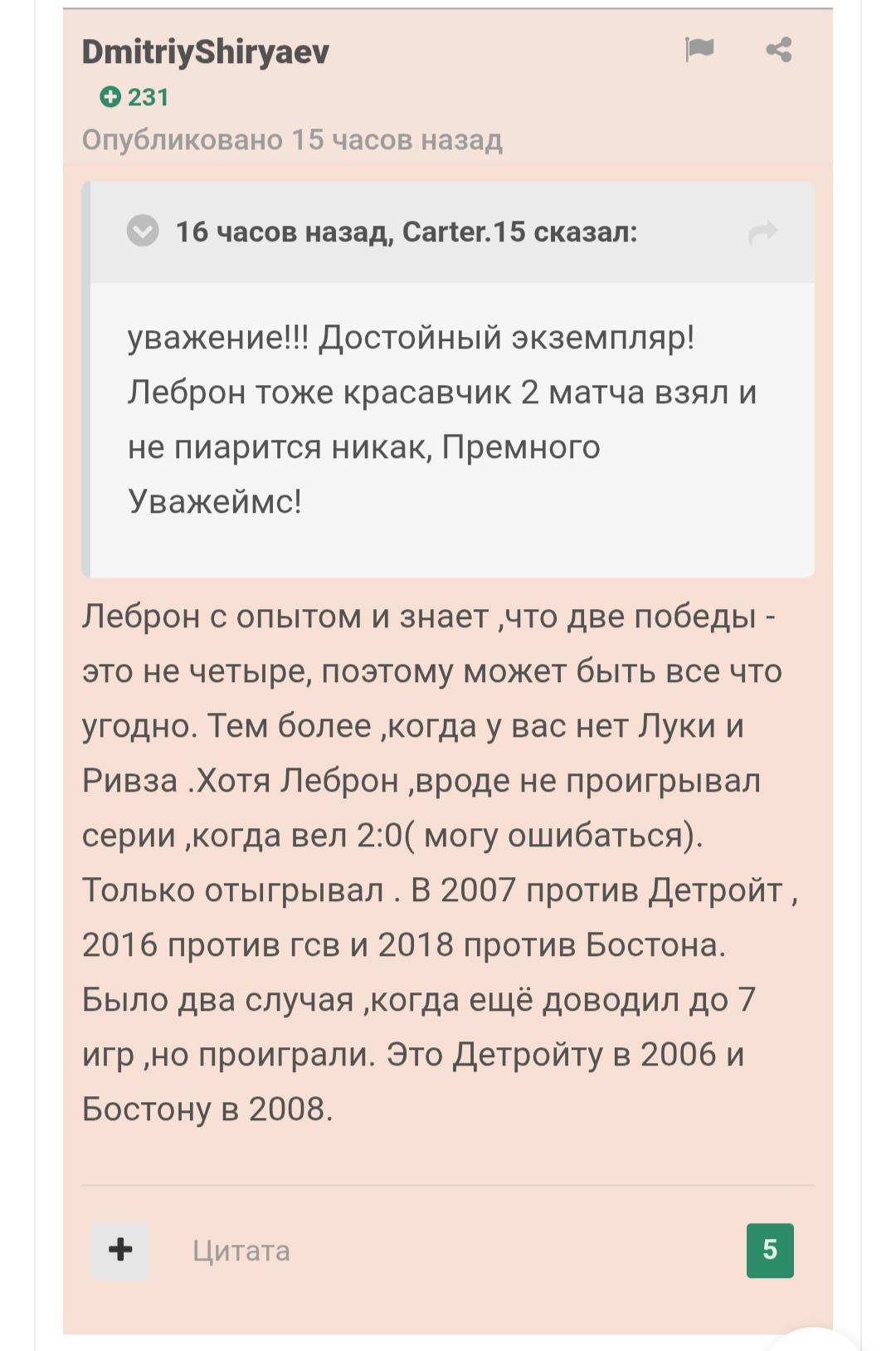 Все таки я оказался прав,что Бронни Джеймс ни разу не проигрывал со счета 2:0. Хьюстон у вас есть шанс поднасрать деду :D