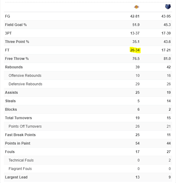 «Лейкерс» после победы над «Мемфисом» (123:120) и поражений конкурентов поднялись на 8-е место на Западе.