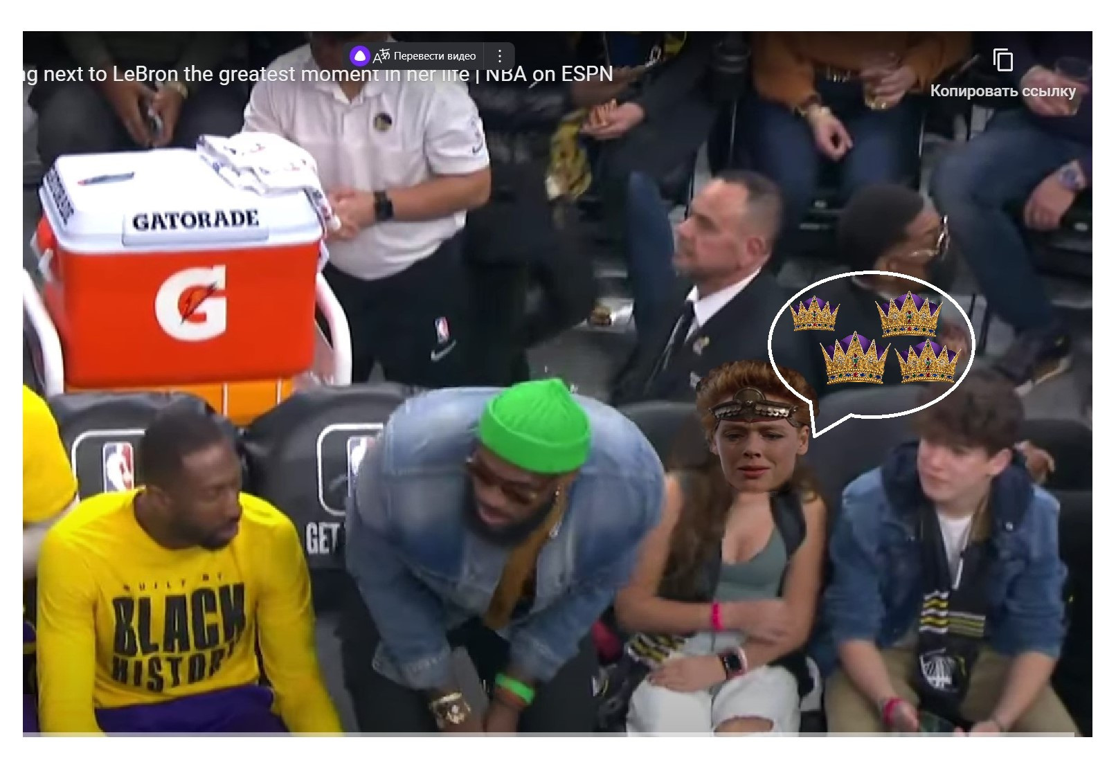 Я была очень счастлива, приехав на этот матч. Но когда узнала, что у него травма стопы, расстроилась. В итоге так получилось, что он сидел рядом со мной. Я не такая высокая, как он, очевидно, поэтому сначала увидела только его туфли. Потом поднимаю глаза и вижу Леброна Джеймса.