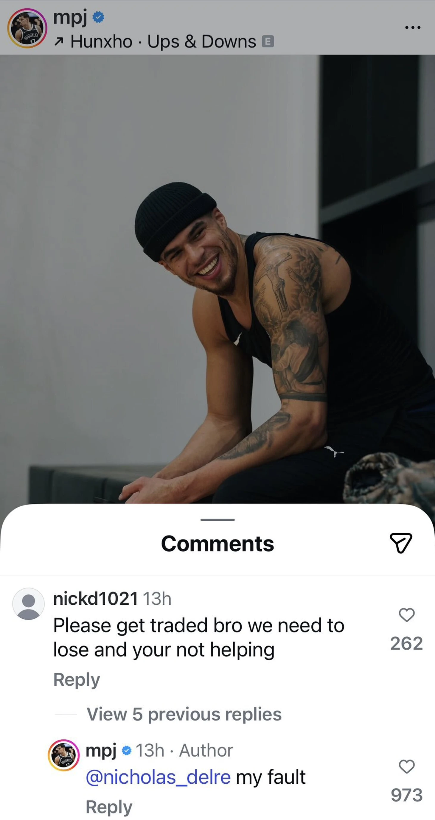 Форвард «Бруклина» отреагировал на комментарий в соцсетях: «Пожалуйста, пусть тебя обменяют, бро. Нам надо проигрывать, а ты только мешаешь». Портер кратко ответил: «Есть такой косяк».