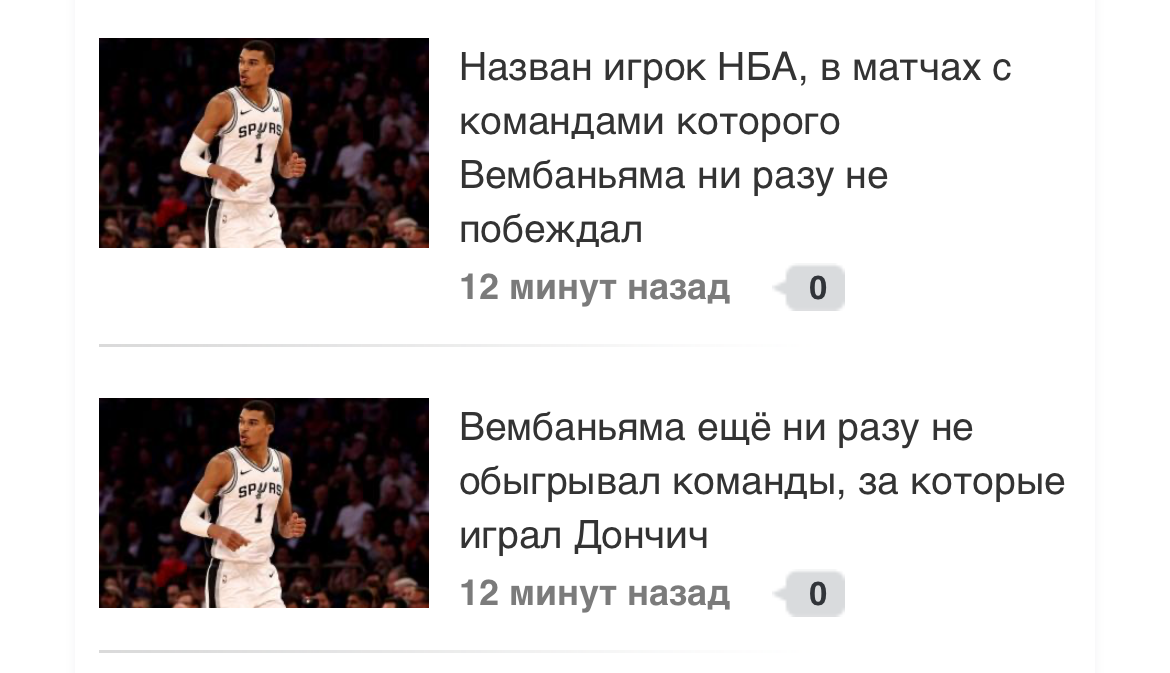 Французский центровой «Сан-Антонио Спёрс» Виктор Вембаньяма на данный момент не одержал ни одной победы в матчах с командами словенского разыгрывающего Луки Дончича, когда тот на паркете.