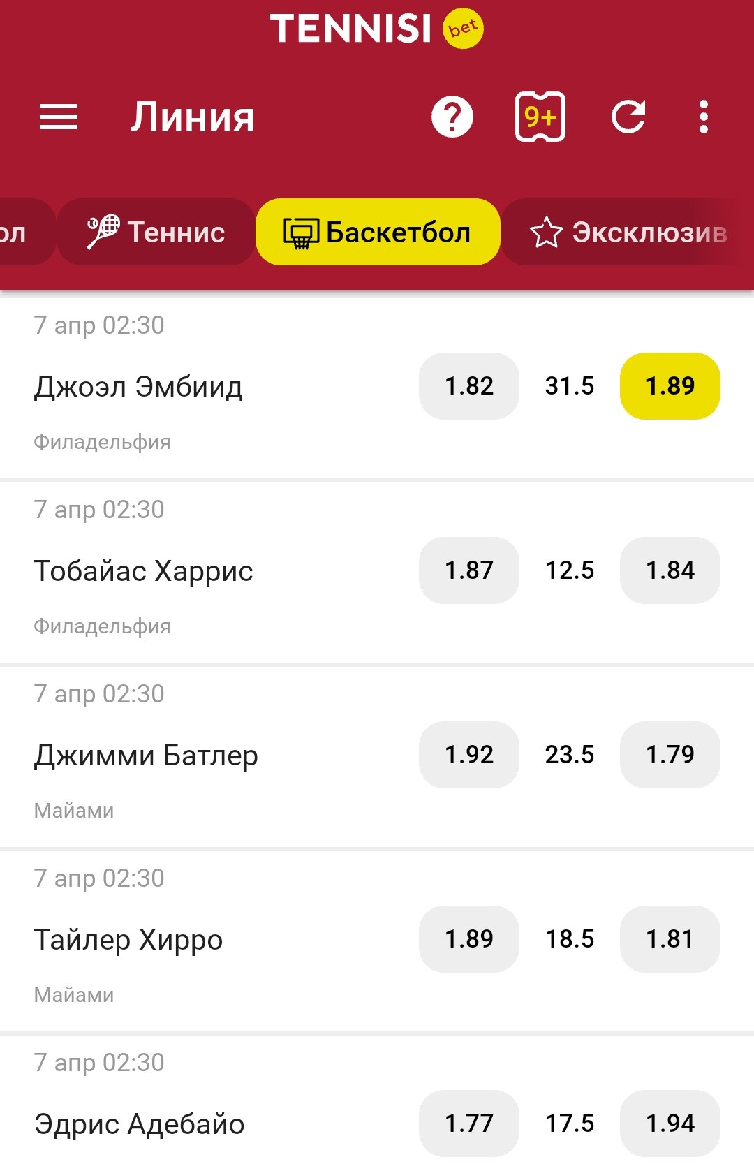 В прошлом матче Джоэл Эмбиид набрал 52 очка. Наши друзья из TENNISI.bet давали кэф 1.89 на то, что против «Майами» он наберёт больше 31,5 очка.