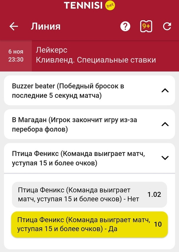 Наши друзья из TENNISI.bet представляли эксклюзивную линию на матч «Лейкерс» – «Кливленд». Так, например, TENNISI.bet давали кэф 10 на то, что одна из команд сможет выиграть матч, уступая по ходу встречи 15 и более очков. «Кливленд» одержал победу, уступая по ходу встречи 11 пунктов.