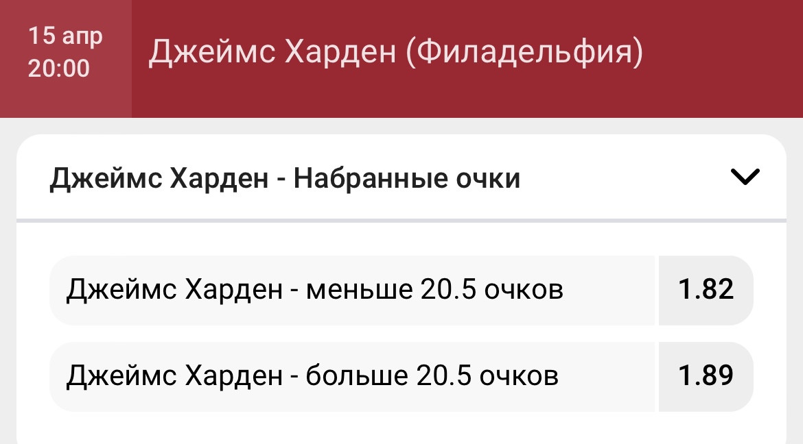 Джеймс Харден набрал 23 очка, наши друзья из TENNISI.bet давали кэф 1.89 на то, что Харден наберет больше 20.5 очка в предстоящей встрече.