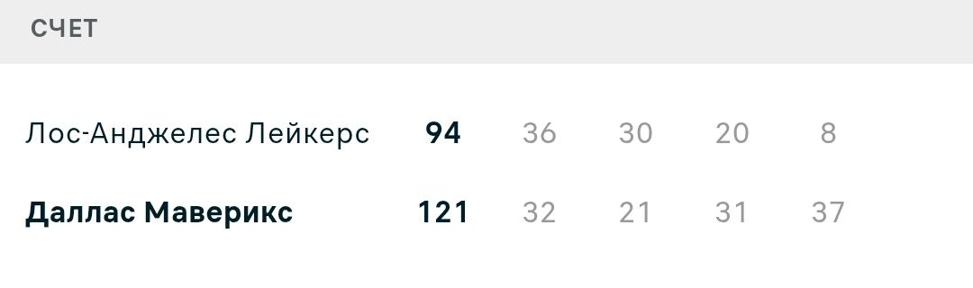 Лейкерс – Даллас 94:121 (36:32, 30:21, 20:31, 8:37)