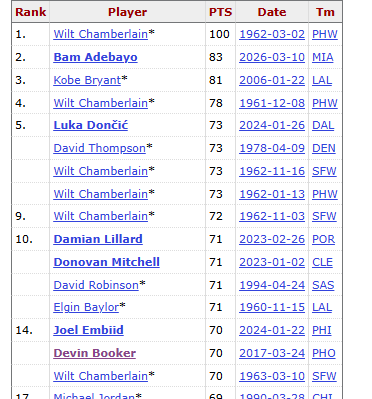 Да всем очевидно, что против дохлой команды какой-нибудь универсальный скорер (типа Эмбиида, Дончича) могли бы и 100 пробить