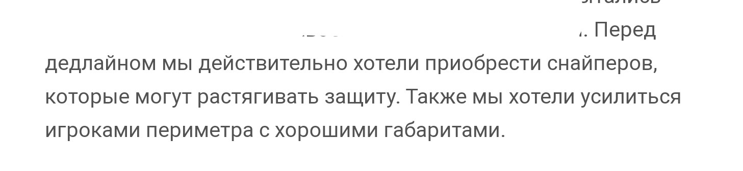 «В первую очередь мы ориентировались на то окно, которое у нас есть с Леброном Джеймсом и Энтони Дэвисом. Мы пытались увеличить наши шансы завоевать чемпионский титул. Перед дедлайном мы действительно хотели приобрести снайперов, которые могут растягивать защиту. Также мы хотели усилиться игроками периметра с хорошими габаритами.