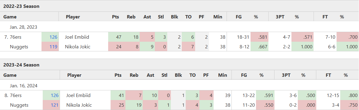в какие сезоны эти игры были? и сколько последние годы эмбидка сыграл против йокича(я говорю про 23\24 и 24\25 сезоны)