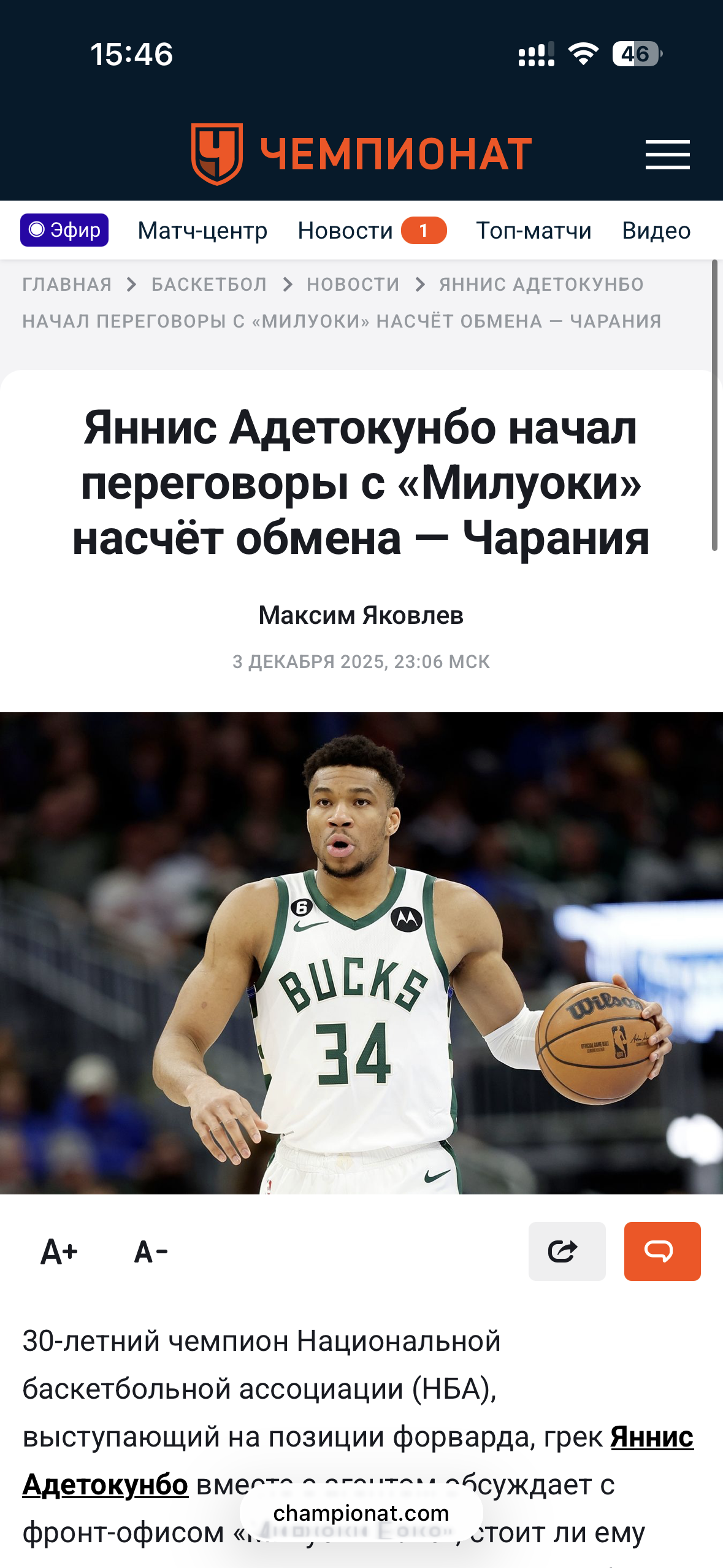 Звезда «Милуоки» Яннис Адетокумбо в интервью The Athletic отчетливо выразил свои намерения на фоне слухов о его обмене.